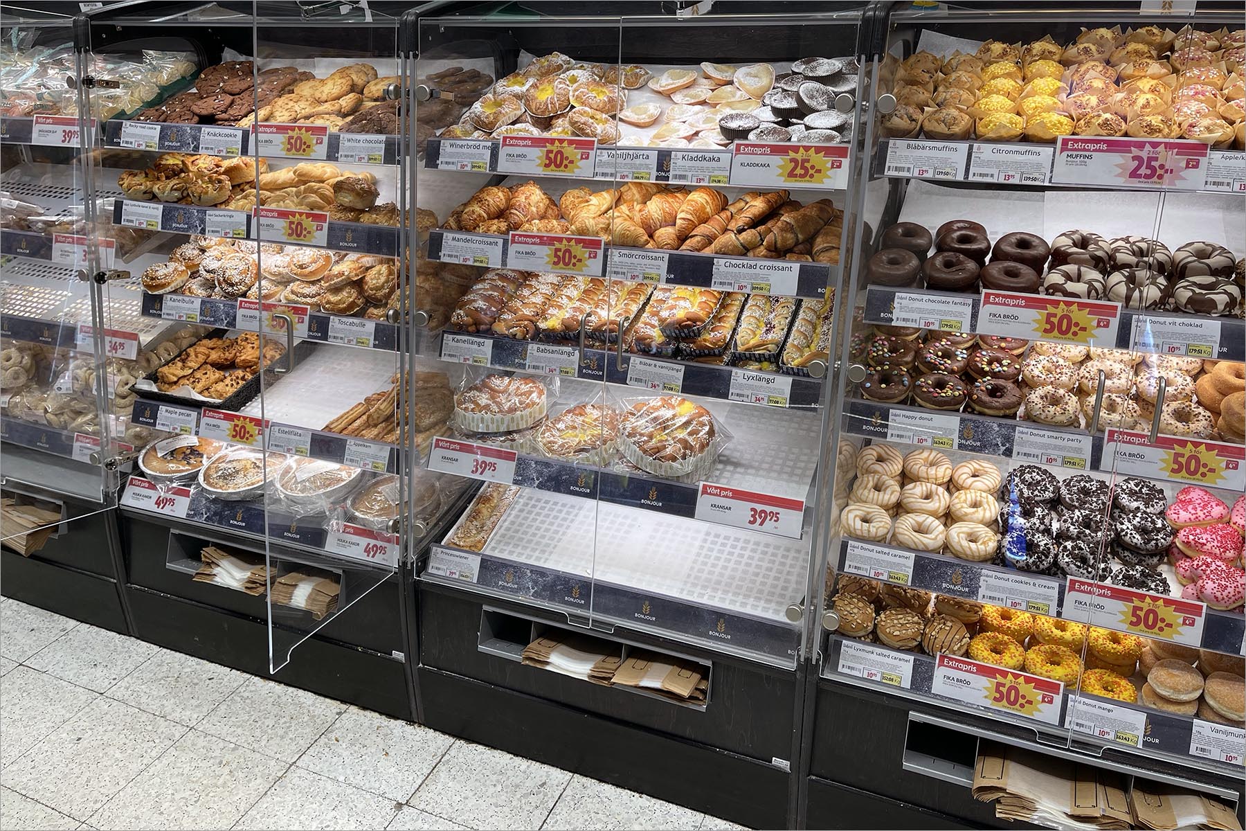 In het centrum ga ik bij een ICA Kvantum naar binnen om m’n tassen te vullen. Het lijkt alsof de bakkerij extra z’n best heeft gedaan om te bevestigen waar ik het vanmorgen met de eigenaar over had.