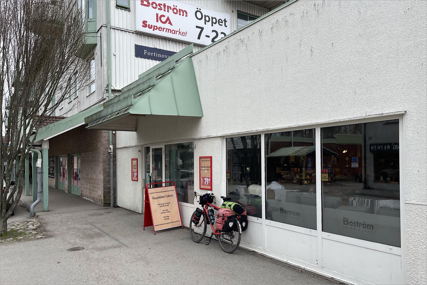 De grote rivier wijkt naar het westen, de weg en ik bereiken Lilla Edet. M’n route schampt de kleine stad alleen maar, als ik hier iets wil moet ik rechtsaf het centrum in. Ik wil hier iets. Aan een plein kom ik een Coop Konsum tegen, maar dat voelt als verraad, vreemdgaan speelt ook bij supermarkten. Op de andere hoek van het plein zie ik een ICA, alles komt goed. Terwijl ik m’n fiets tegen de muur zet ontdek ik hoe goed. Dit is niet alleen een supermarkt, er zit een ICA café naast. Ik gluur naar binnen en zie een onvervalste Konditorei, Zweedse stijl. Wie aan het bestaan van de Almachtige twijfelt, is vandaag niet in Lilla Edet geweest.