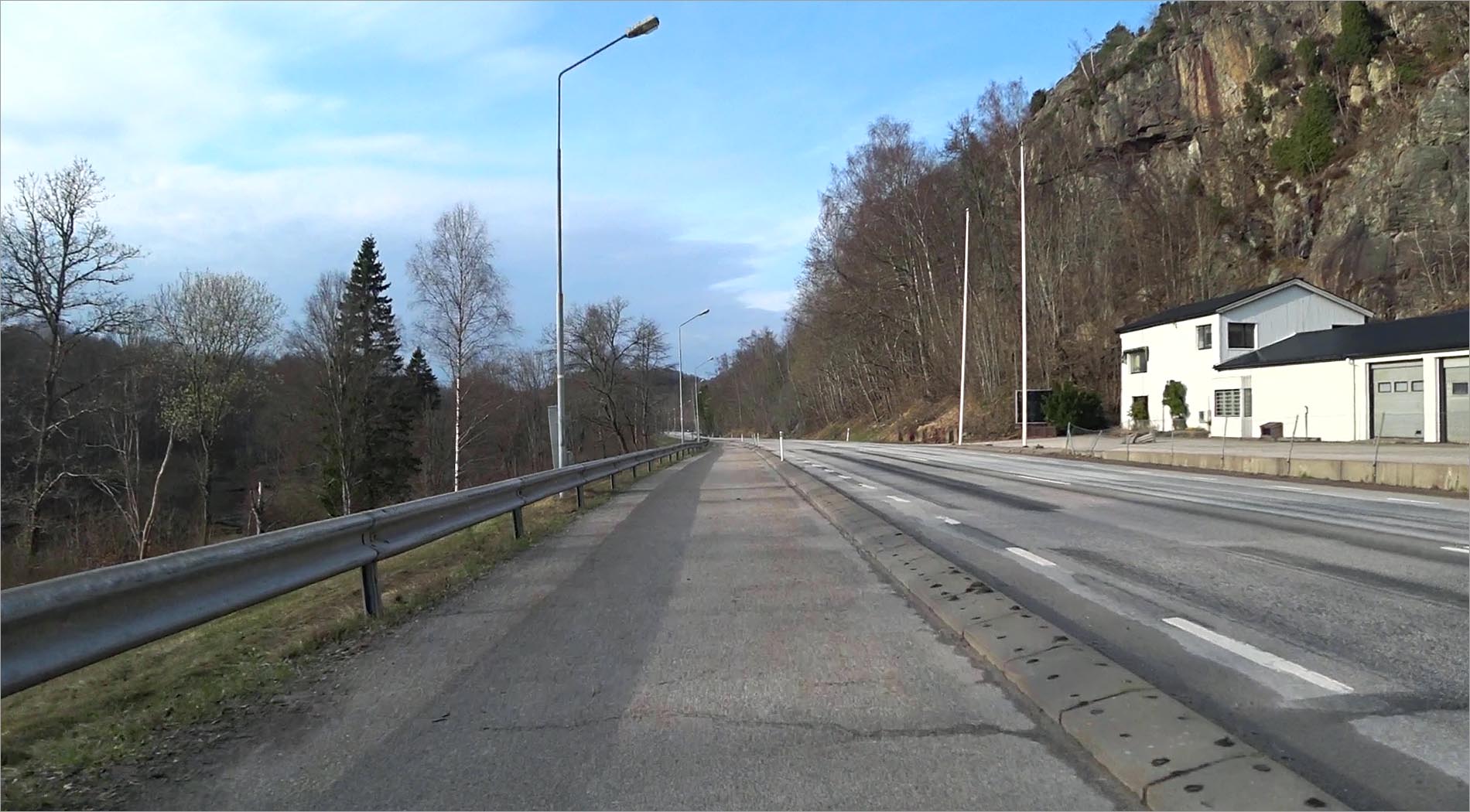 Een weg van links voegt in, het asfalt begint weer, het bos- en merengebied verandert in een glooiend grasdal tussen beboste randen. Ik fiets over hellingen en heuvels, het blijft leuk, al is er meer verkeer. Bij de aansluiting op de grote doorgaande 44 verlaat ik de weg, die na de aansluiting een invalsweg naar Uddevalla wordt, en ga rechtsaf het bos in.