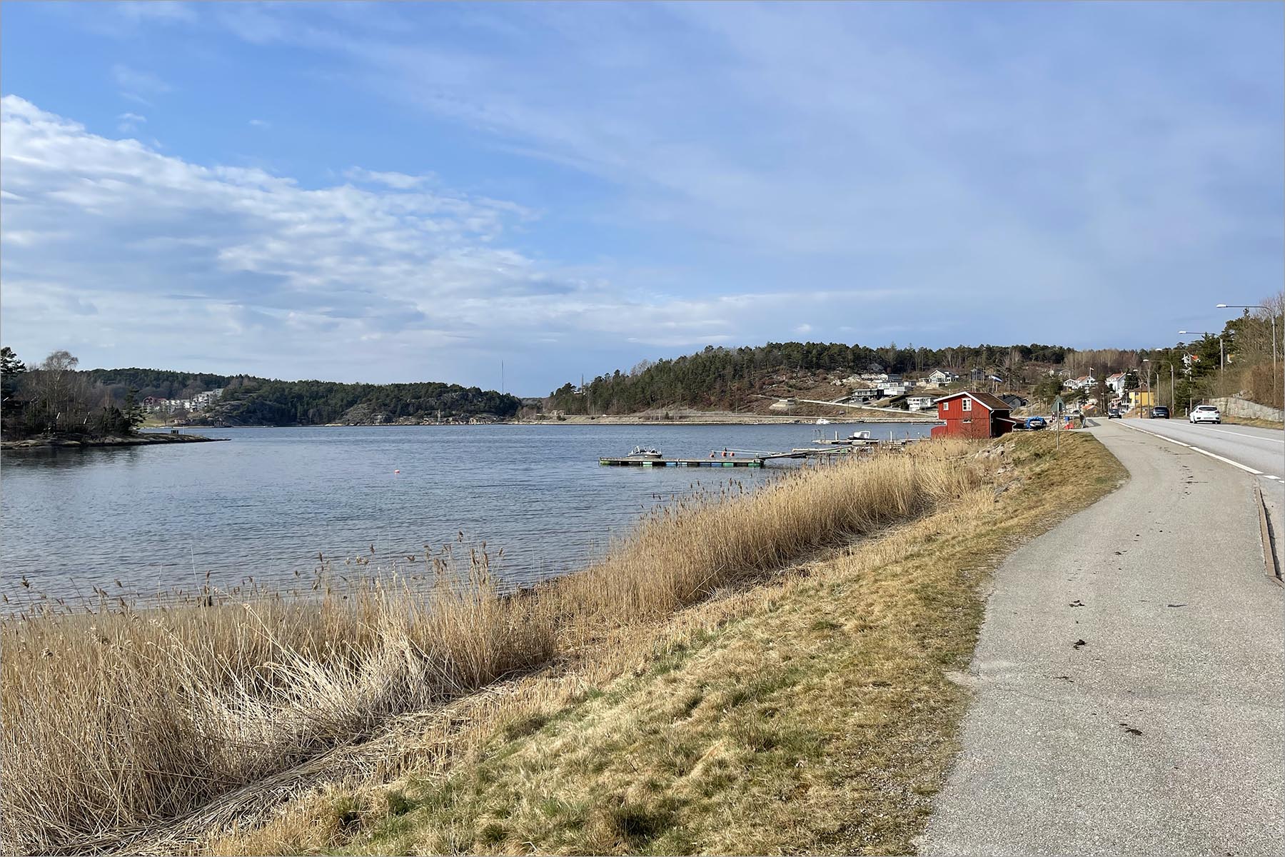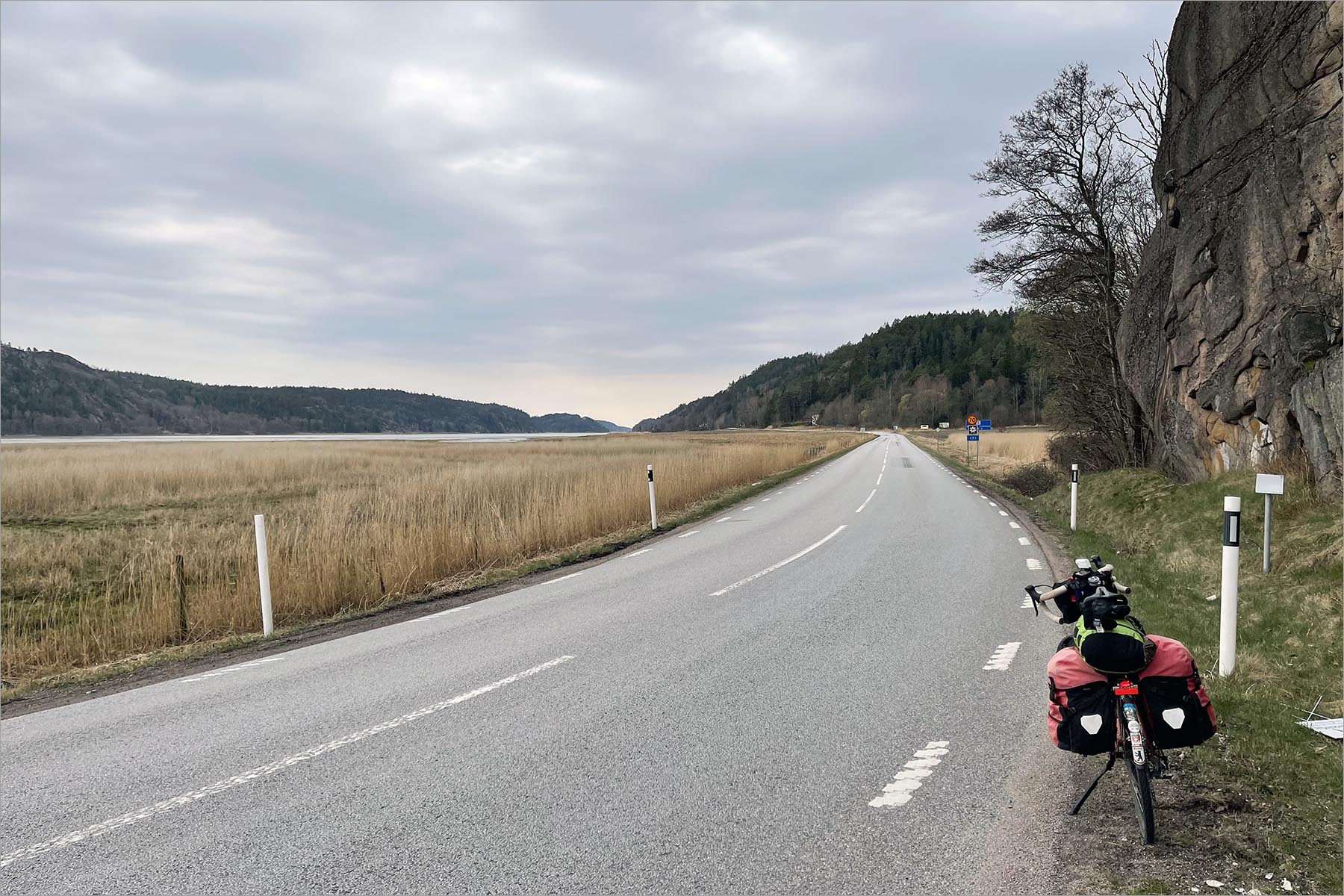 De weg na Tanumshede behoudt haar karakter: een beetje op en neer tussen lange vlakke stukken waar ik kan opschieten, zonder veel verkeer. ‘Opschieten’ is niet iets dat ik zoek in een fietsdag, maar het vooruitzicht van de camping vanavond en de rustdag morgen maakt dat ik er graag wil zijn. Dan is onbezorgd kunnen doorraggen precies wat ik wil. Geen adembenemende landschappen, geen grote inspanning, gewoon aangenaam fietsen.