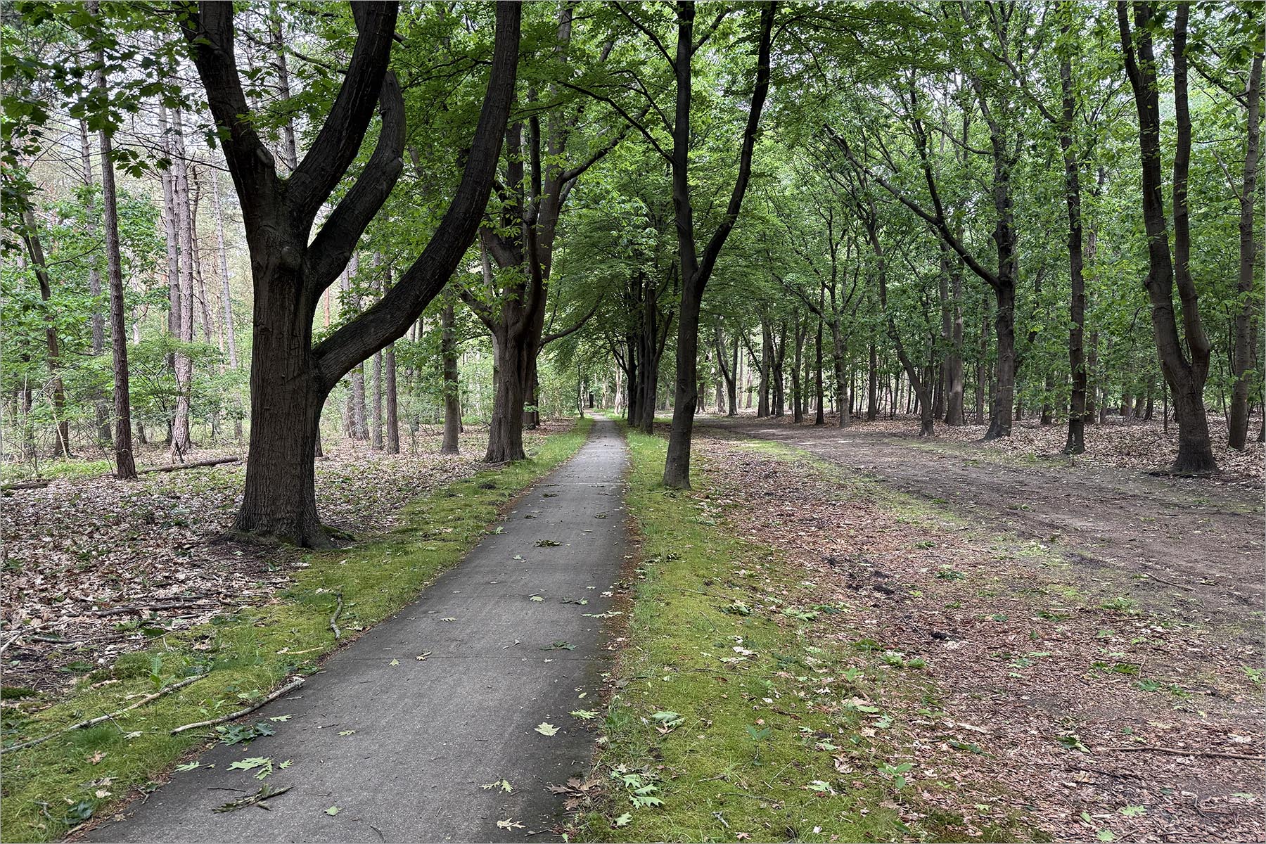 Op de terugweg-met-omweg ga ik van het fietspad af, een zandweg door het bos in. Ga rechts, ga links, op goed geluk. Ik kom op plekken waar ik nooit eerder geweest ben, een hondenuitlater wenst me goedemorgen, een ree doet dat waarschijnlijk ook maar is te ver weg om te verstaan. Als ik weer thuis ben heb ik in twee uur tijd een avontuur beleefd. Met de vrijheid van twee wielen en de natuur om me heen is het dat heel snel.